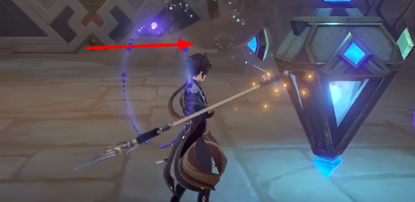 3、进去门后我们可以发现熟悉的机关,还是照常攻击2次让它流向大门处。