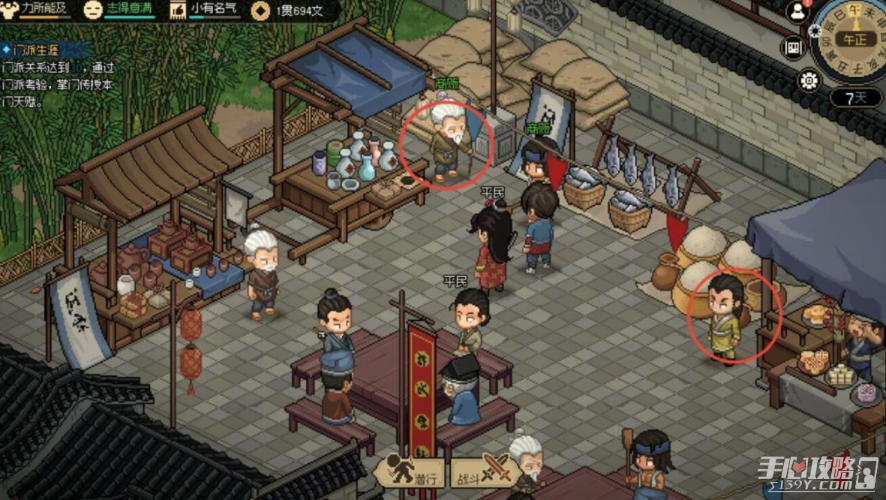 2、还有一种方法是在小乞丐那里学习暗取技能后,去楚襄城市集那里,找到这两个商贩。