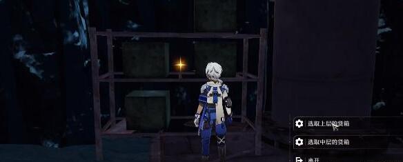 5、再来到右侧两个箱子的货架,在货架的中层发光处将箱子放下。