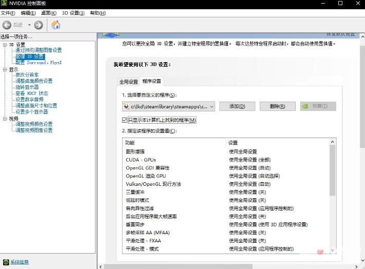 右侧选择程序设置,在第一项选择要自定义的程序一栏中,点击添加按钮,找到《狂野之心》游戏即可强制开启独显运行。