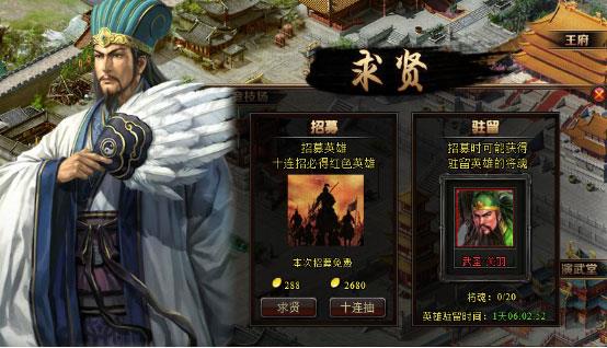 求贤分为单抽和十连抽,十连抽必然会获得红色英雄。